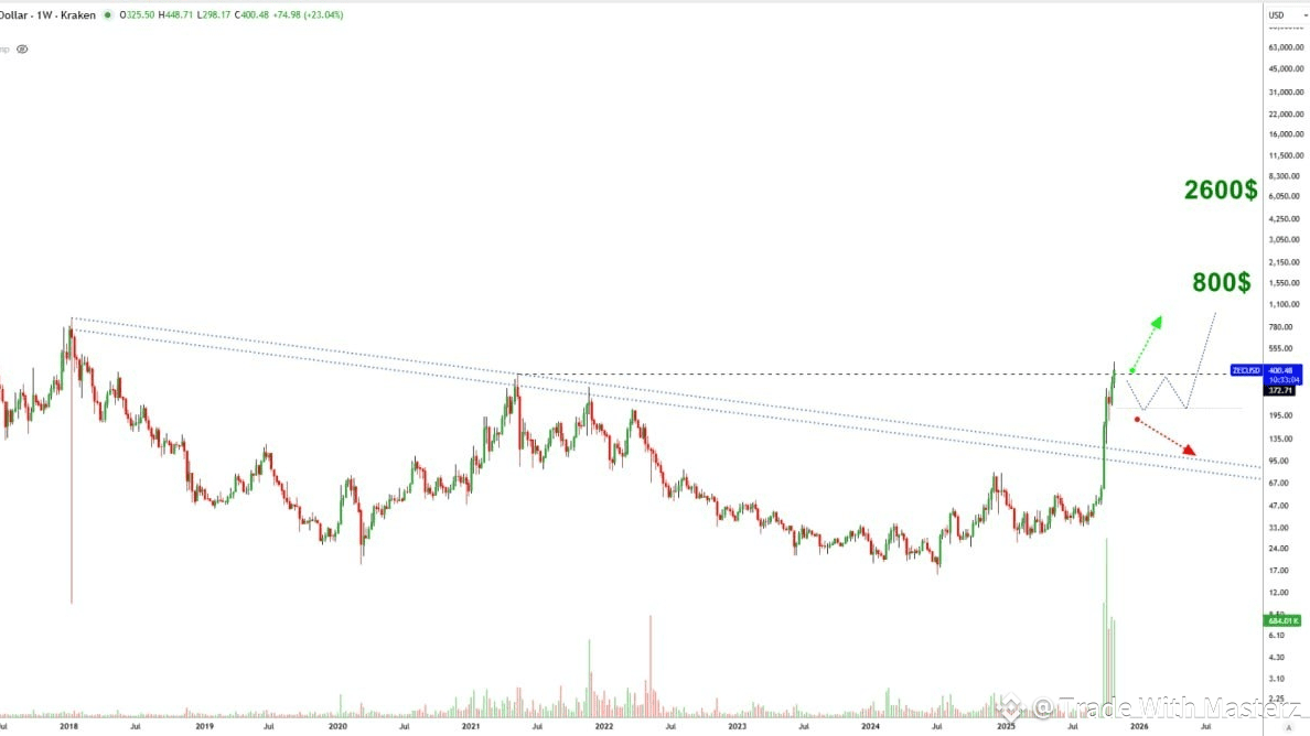 Ein Durchbruch über 800 $ würde bedeuten, dass ZEC sowohl die Höchststände von 2017 als auch von 2021 überschritten hat — und in uncharted bullische Territorien eintritt.