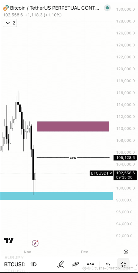 Vor zwei Tagen habe ich eine Analyse geteilt, die darauf hinweist, dass die Schlüssel-Rückprallzone für Bitcoin bei etwa 98.000–99.000 $ liegt. Gestern fiel Bitcoin genau in diesen Bereich und sprang sofort wieder auf etwa 102.500 $ - genau wie erwartet.