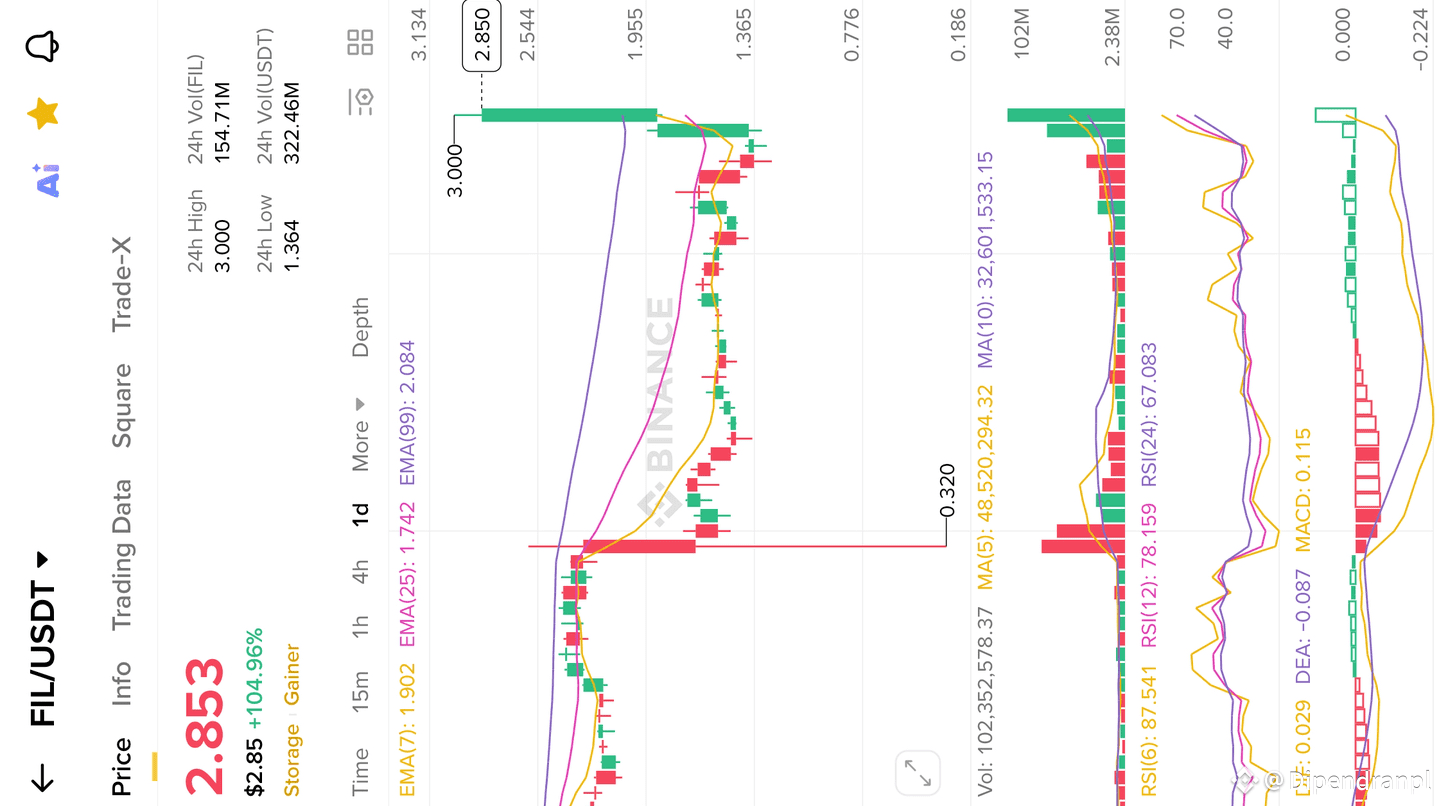 1. Preis-Momentum: Der Preis von FIL ist in den letzten 24 Stunden um über 75% gestiegen, angetrieben von starken Erzählungen über KI und DePIN und unterstützt von robusten bullischen technischen Indikatoren.