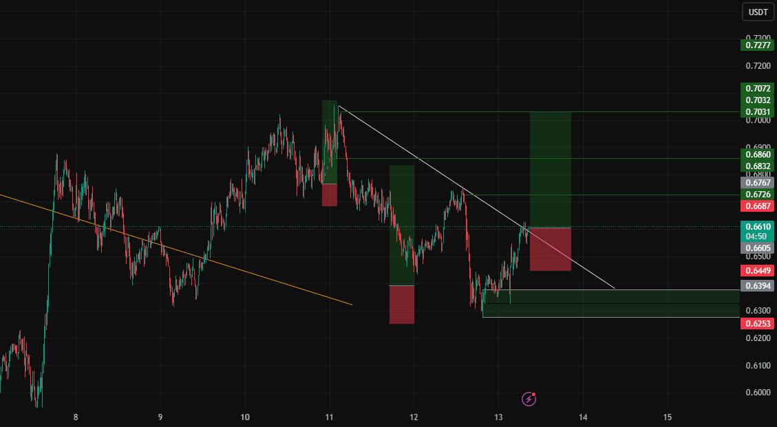 Wenn der Kurs über 0.66 bleibt, ist ein weiterer Anstieg in Richtung des Bereichs 0.70 wahrscheinlich, was mit dem nächsten Widerstandsniveau übereinstimmt.