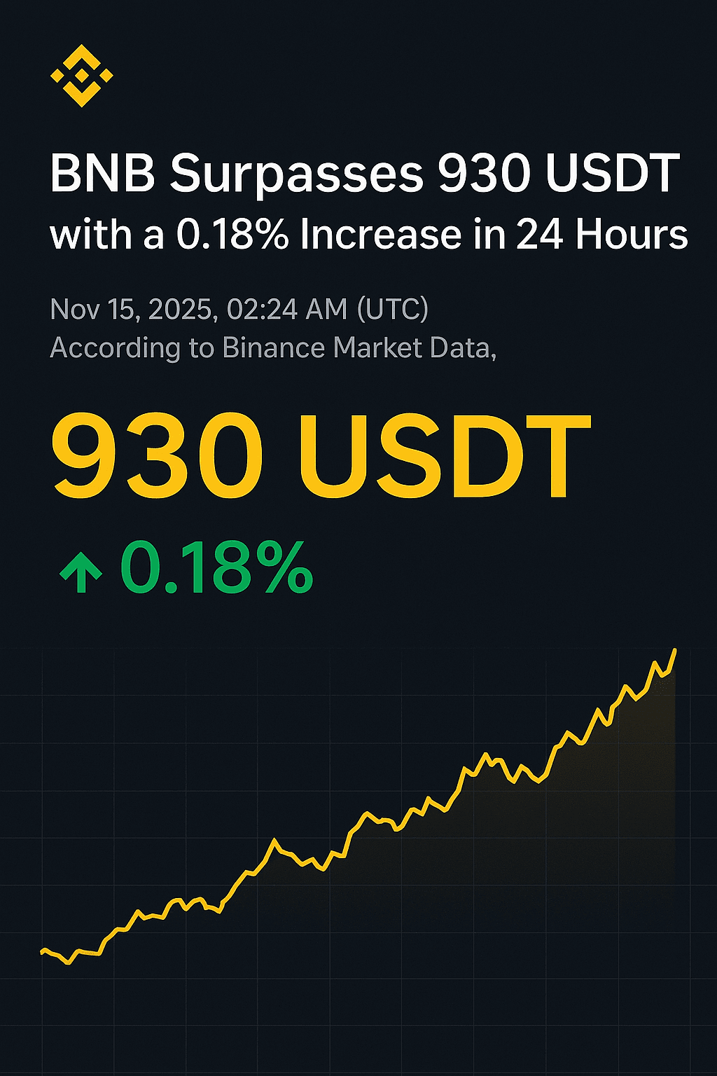 Am 15. November 2025, 02:24 Uhr (UTC), zeigt die Binance-Marktdaten, dass $BNB offiziell die 930 USDT-Marke überschritten hat. Der Vermögenswert wird derzeit zu 930 USDT gehandelt, was einen bescheidenen, aber stetigen Anstieg von 0,18 % in den letzten 24 Stunden widerspiegelt.
