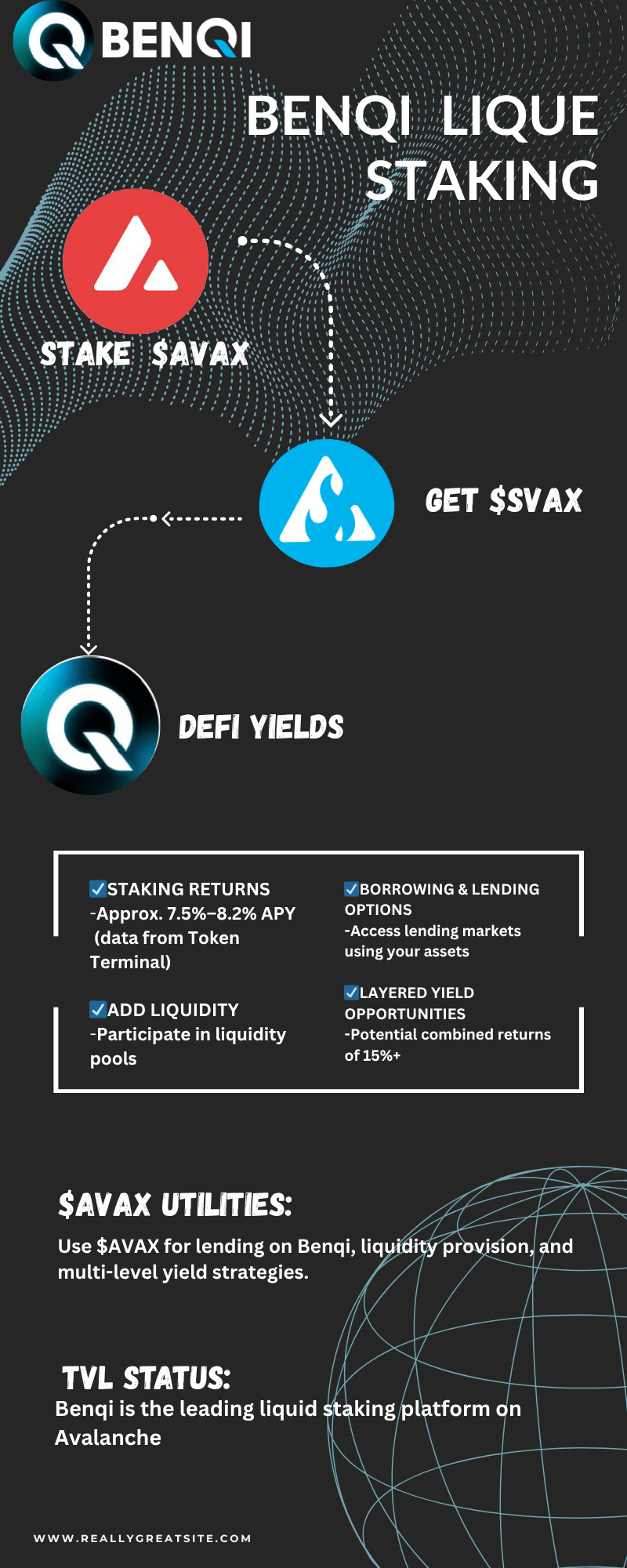 BENQI ist ein zentrales DeFi-Hub auf Avalanche, das darauf ausgelegt ist, das Verleihen, Ausleihen und Staking schneller, günstiger und effizienter zu gestalten. Es wurde geschaffen, um ein großes Problem in der Krypto-Welt zu lösen: Vermögenswerte, die untätig bleiben, wenn sie mehr verdienen könnten.