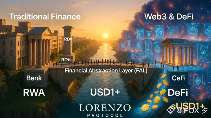 Was Lorenzo noch interessanter macht, ist sein infrastruktureller Ansatz, die Financial Abstraction Layer (FAL). Es ist wie eine konzeptionelle und technische Brücke: eine Brücke zwischen der traditionellen Welt (Banken, reale Vermögenswerte) und der Welt von Web3 (Blockchain, Smart Contracts). Mit FAL kann Lorenzo das Ökosystem von CeFi und DeFi überbrücken und gleichzeitig reale Vermögenswerte (die früher nur von großen Institutionen gehalten wurden) in einen für die Öffentlichkeit zugänglichen DeFi-Flow bringen. Eine solche Vision ist nicht nur eine futuristische Idee, Lorenzo hat bereits intensiv getestet: USD1+ OTF hat von Testnet auf Mainnet in der BNB Chain gewechselt.