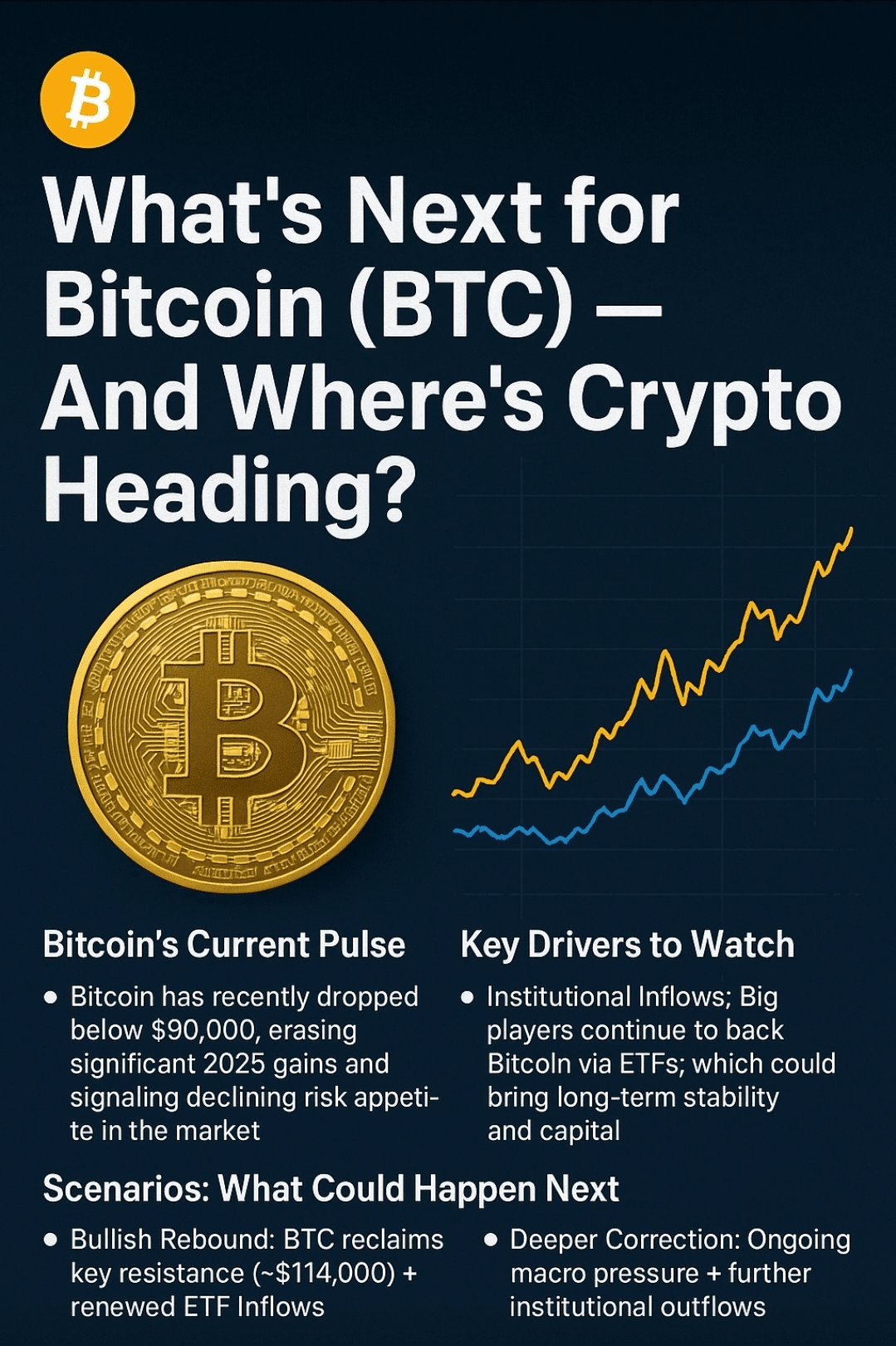 Bitcoins unter $90K signalisiert, dass die Risikobereitschaft schwĂ€cher wird; weitere RĂŒckgĂ€nge bleiben eine reale Möglichkeit.