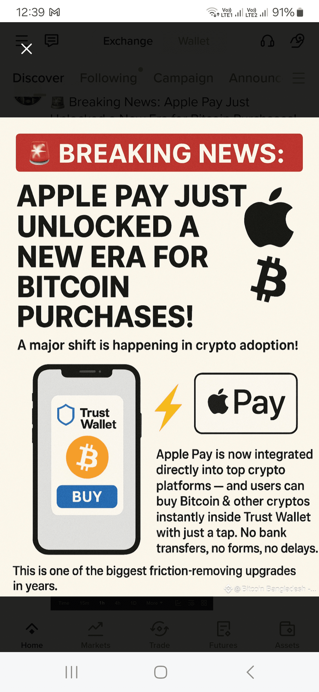 Apple Pay ist jetzt direkt in die besten Krypto-Plattformen integriert — und Benutzer können Bitcoin & andere Kryptos sofort in Trust Wallet mit nur einem Tipp kaufen. Keine Banküberweisungen, keine Formulare, keine Verzögerungen. Dies ist eines der größten updates, die Reibungen beseitigen, seit Jahren.#BinanceHODLerAT