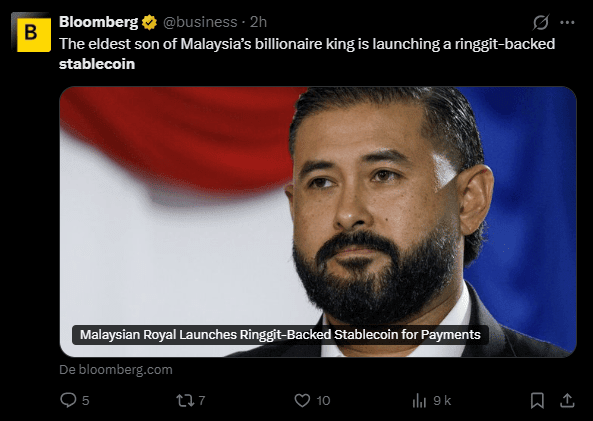 Malaysia sollte laut Bloomberg – Quelle: Konto X – 2026 seinen eigenen Stablecoin auf den Markt bringen
