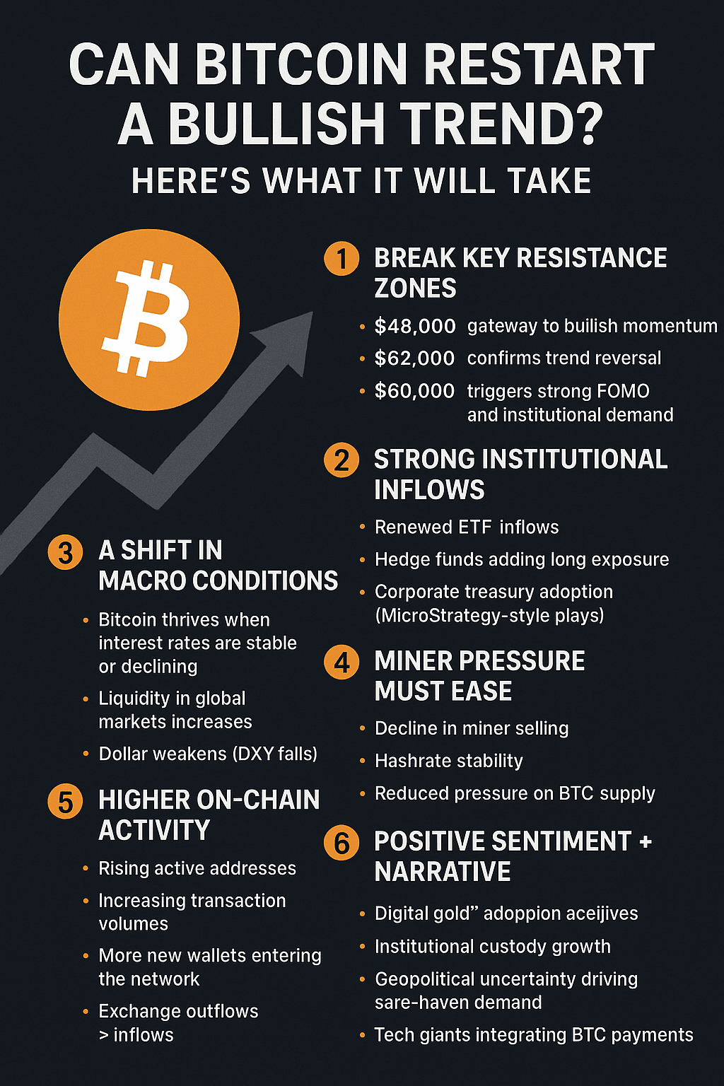 Wenn Bitcoin wichtige Widerstandsniveaus zurückgewinnen, institutionelle Käufer anziehen und die makroökonomischen Bedingungen sich entspannen kann, wird ein neuer bullischer Trend nicht nur möglich — sondern wahrscheinlich.