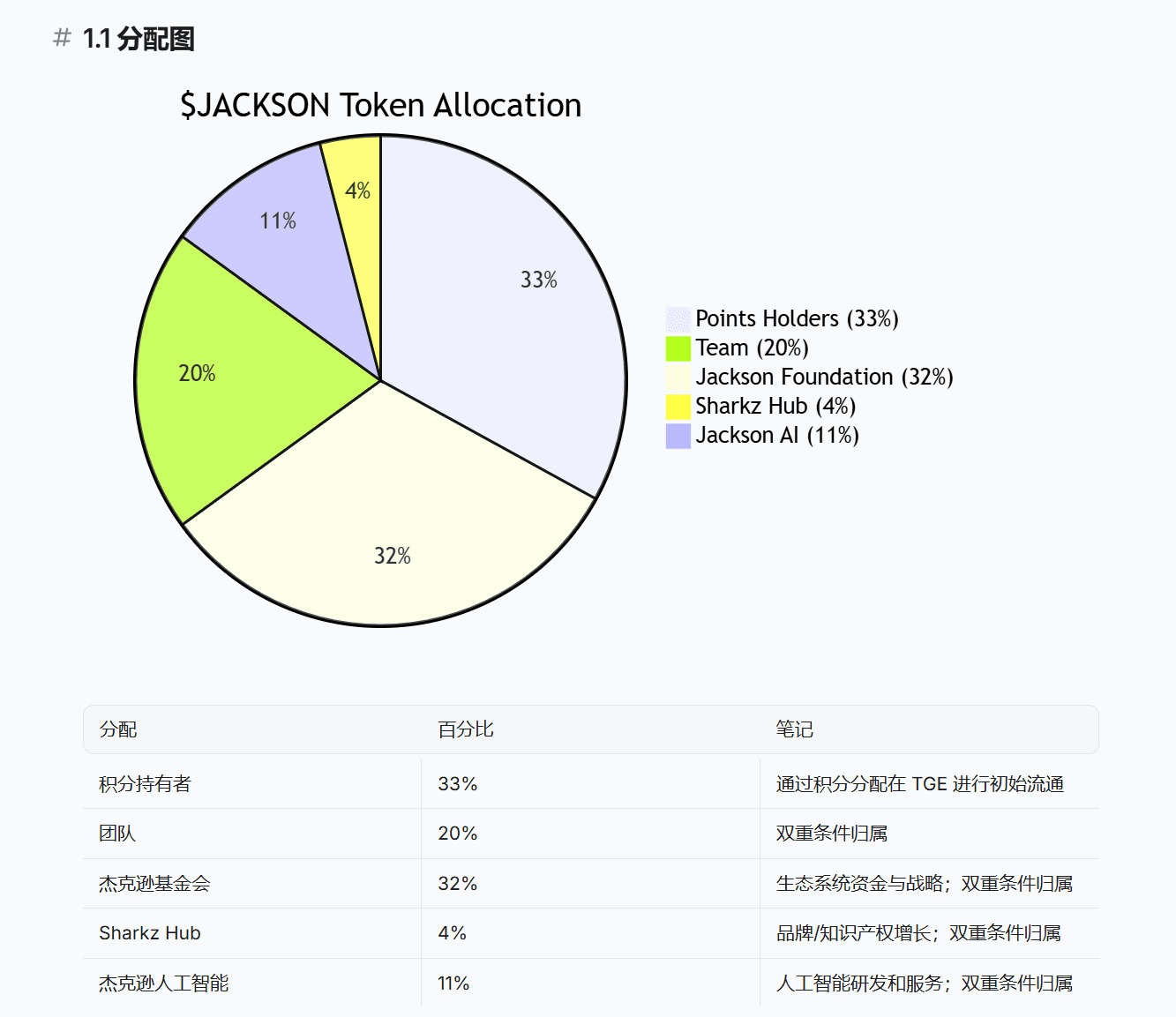 Zuerst wurde $JACKSON-Token am 01.12.2025 von Jackson.io herausgegeben, alle im Umlauf befindlichen Token wurden an die Sui-Ökosystem-Nutzer zurückgegeben, die an dem Punktewettbewerb teilgenommen haben. Bei der TGE wurden keine Token verteilt.