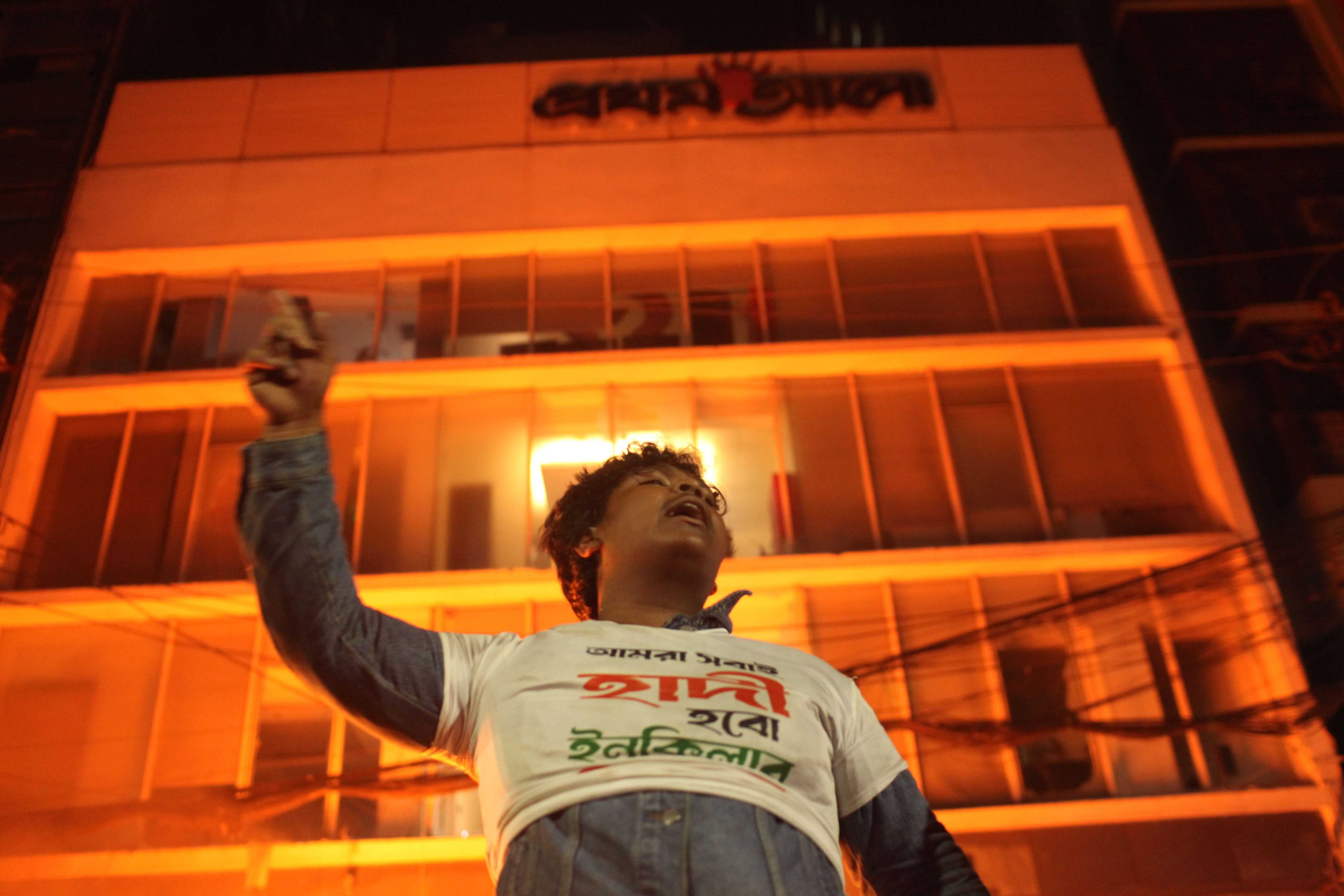 In Dhaka zeigten in sozialen Medien kursierende Videos, wie Mobs die Büros der größten Tageszeitung des Landes, Prothom Alo, sowie die Daily Star verwüsteten.
