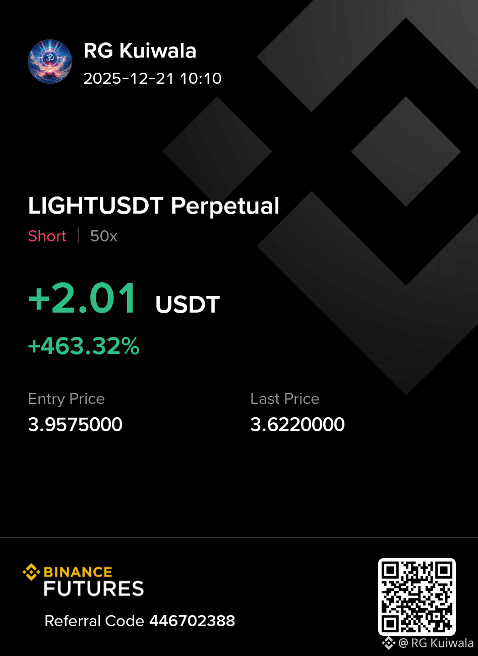 The #LIGHTUSDT Perpetual pair showcased strong bearish momentum as a well-timed Short trade with 50x leverage delivered impressive results on Binance Futures. Entered at 3.9575 and closed near 3.6220, the trade capitalized on market weakness with precision.