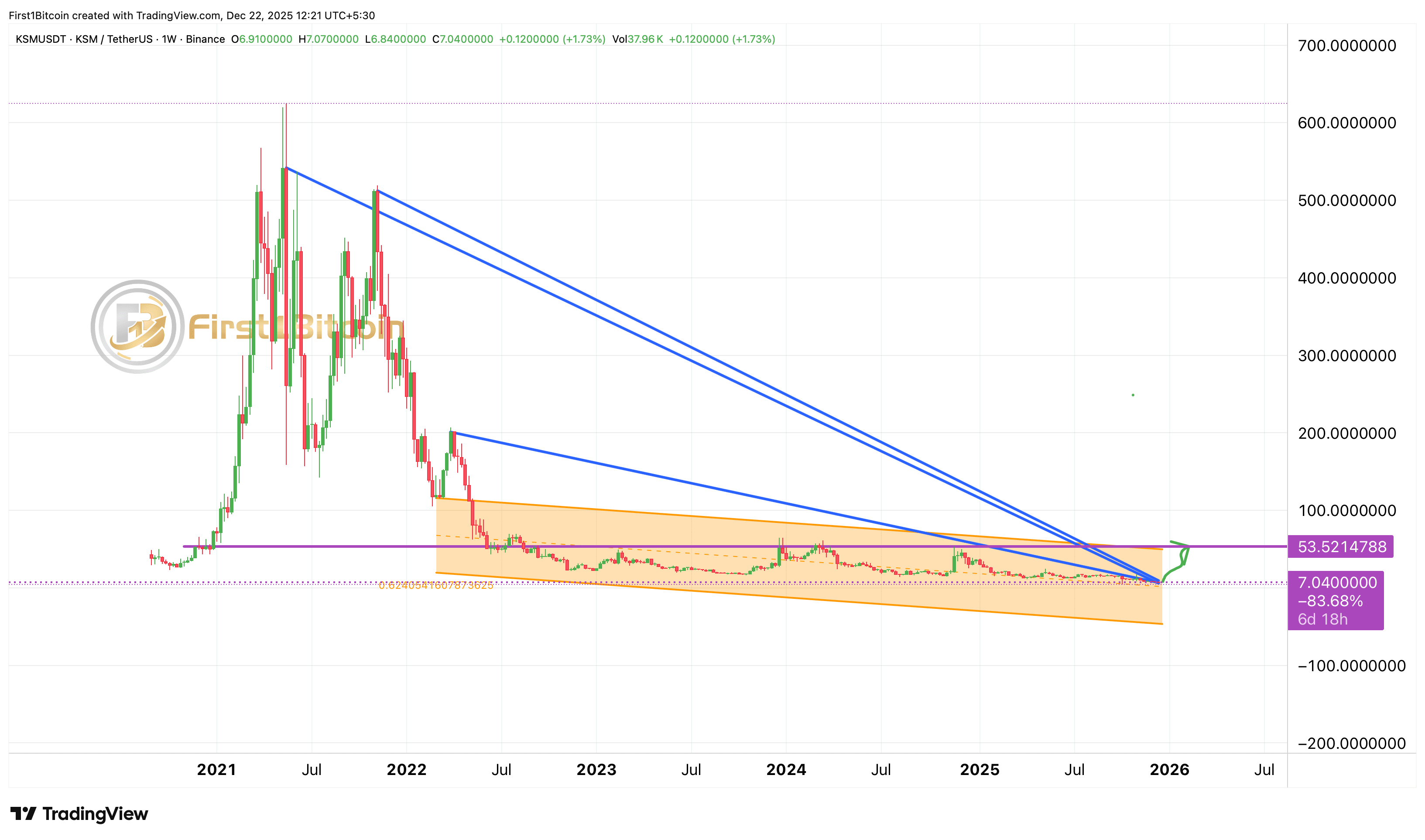 #Kusama komprimiert sich auf Zyklus-Niedrigstständen nach einem ~84% Rückgang von den Höchstständen.