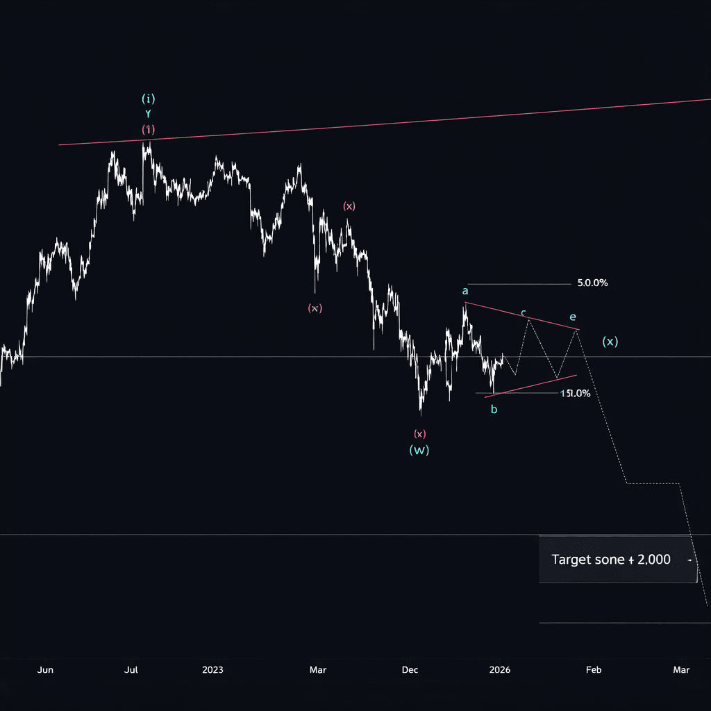 Potenzielle Landezonen: $2,060 und $1,700 Regionen โ wahrscheinlich Tiefpunkte fรผr Welle (2).
