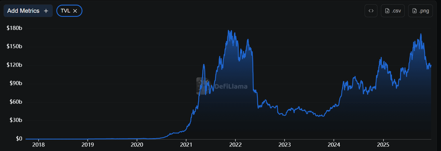 Die dezentrale Finanzierung (DeFi) TVL hat sich stark erholt und liegt bei etwa $140-150 Milliarden. Protokolle wie Aave, Uniswap und aufkommende Perpetual DEXs bieten echten Nutzen – Kreditvergabe, -aufnahme und Handel ohne Zwischenhändler.