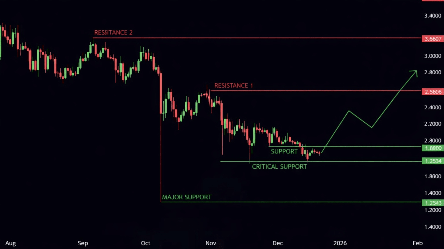 Die $2,00 psychologische Barriere ist jetzt das unmittelbare Schlachtfeld. Ein erfolgreicher Durchbruch dieses Niveaus, kombiniert mit anhaltendem institutionellem Kauf, öffnet die Tür zum Bereich von $2,30–$2,50.