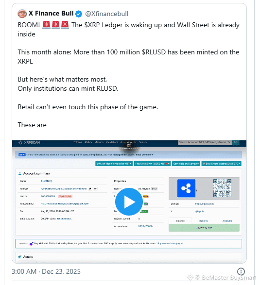 Eine wichtige Implikation, die von X Finance Bull aufgeworfen wird, wird oft übersehen. Wenn Banken RLUSD integrieren, integrieren sie auch standardmäßig die Rails von XRP. Selbst wenn XRP nicht direkt in den Bilanzen gehalten wird, wird es Teil des Abwicklungsprozesses im Hintergrund.