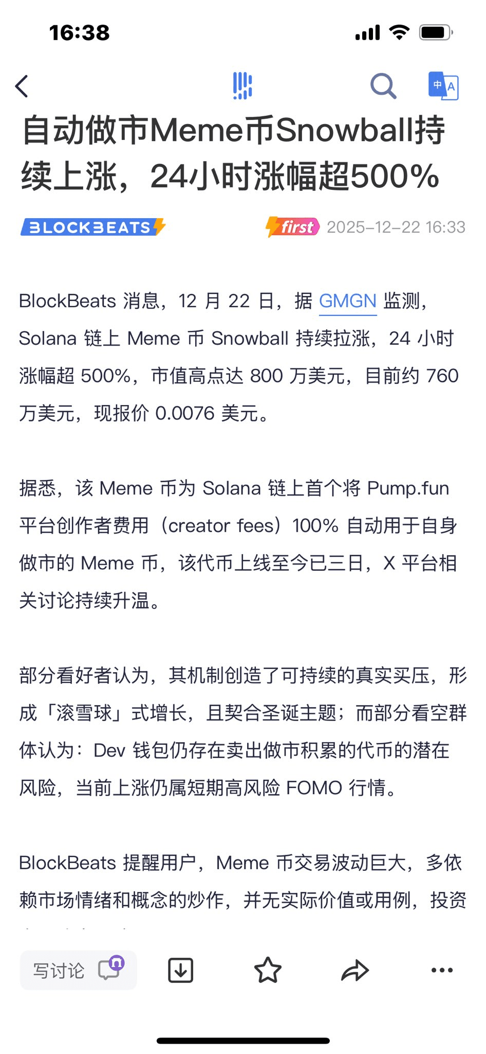 Alles wird von seinem Schneeball-Bot auf quantitativer Ebene bearbeitet. Bildet es einen Flywheel-Effekt? Mit diesem BOT Coins auszugeben, kann der DEV die Creator-Gebühr nicht bewegen, sein Marktmittel kommt aus den Handelsgebühren, und häufiges Market Making fördert die Handelsgebühren, und dann wird jede Transaktion verbrannt.
