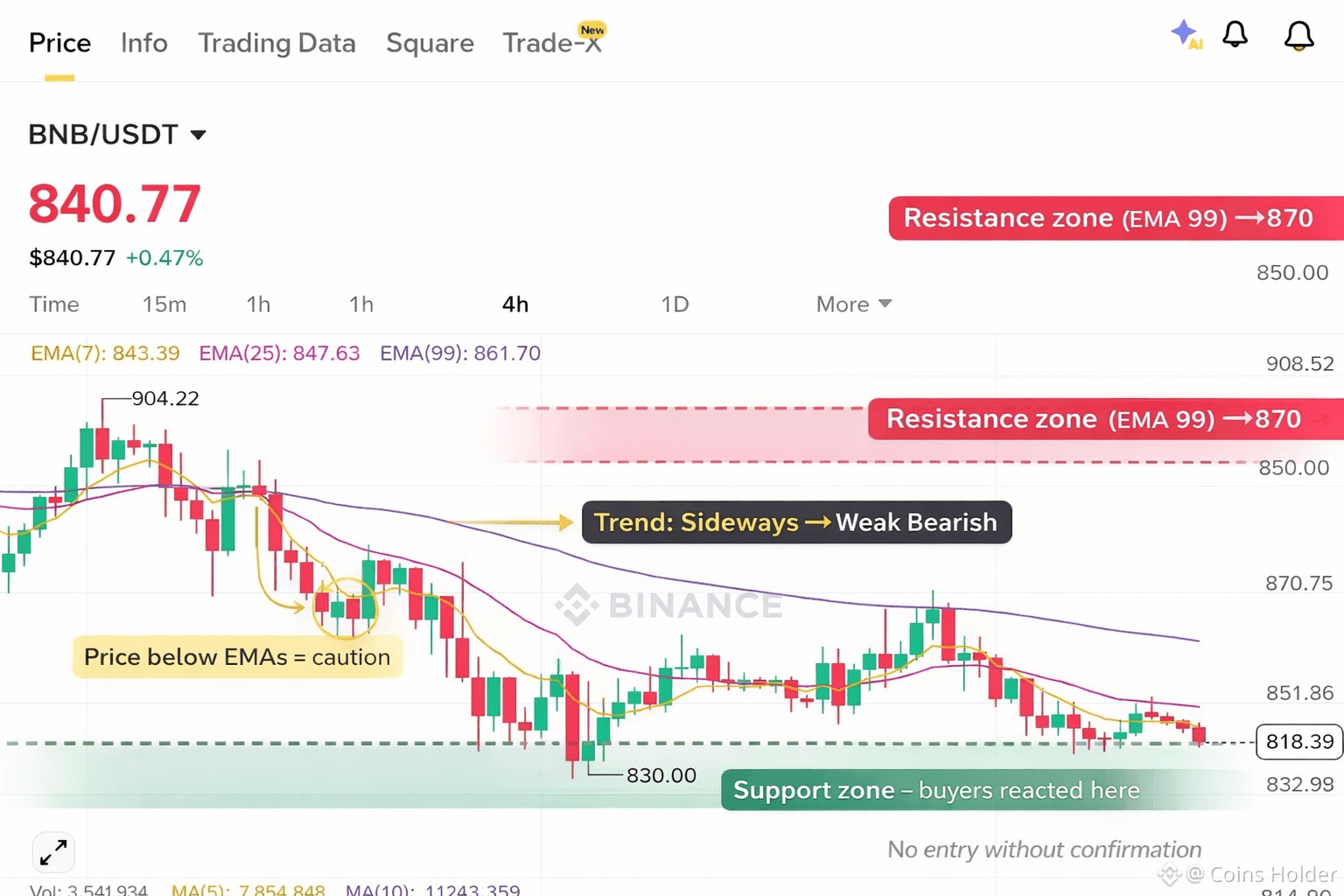 طالما السعر أسفل EMA25 و EMA99