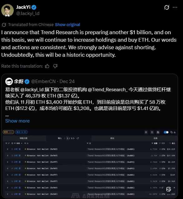 Während einige Treasuries fliehen, tritt das "Smart Money" ein, um einen Boden zu bieten. Der Gründer von Liquid Capital, Jack Yi, bestätigte kürzlich einen massiven Kauf von $1,72 Milliarden ETH, nachdem der Vermögenswert im November die $2.600-Marke berührte.