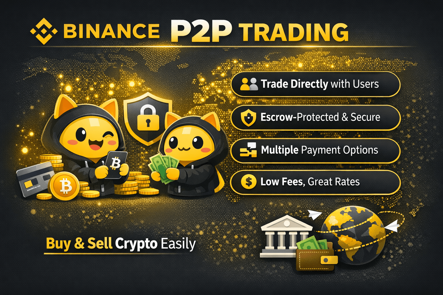 P2Ptrading als Kernfunktion, die den Nutzern die Möglichkeit bietet, Krypto direkt mit anderen zu kaufen/verkaufen, wobei viele Fiat-Währungen und Zahlungsmethoden verwendet werden — ein wichtiger Liquiditätskanal außerhalb der Standard-Börsen-Orderbücher. �