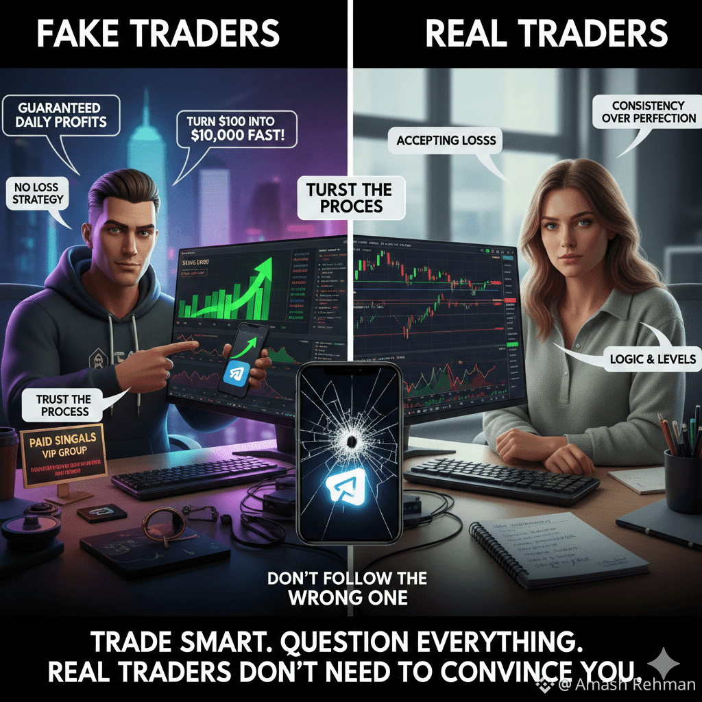 Study their logic.Watch how they handle losses.Check if they educate or just impress.In crypto, the loudest voice is rarely the smartest one.Trade smart.Question everything.And remember real traders don’t need to convince you.