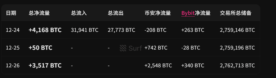 Anhaltender Nettomittelzufluss: 3 Tage kumulativer Nettomittelzufluss +7.735 BTC zur Börse, Börsenreserven erhöhten sich um 3.567 BTC