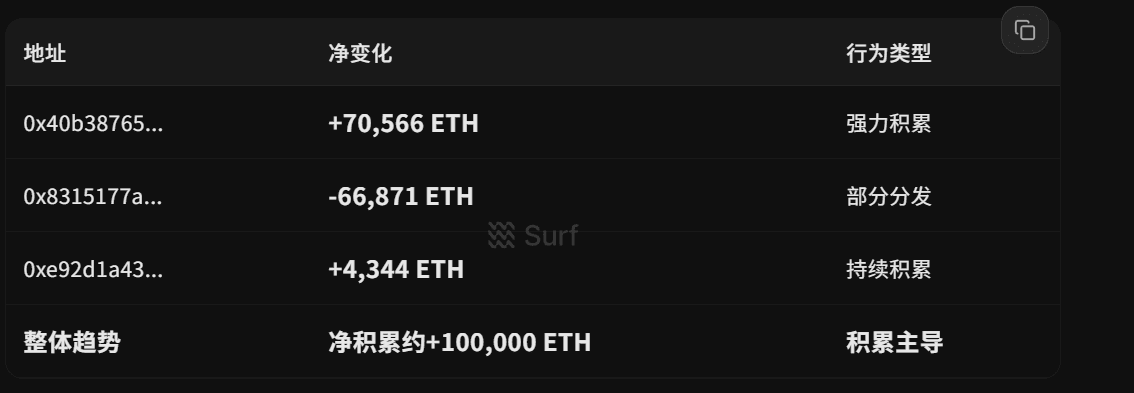 Wal-Differenzierung: ETH Großanleger akkumulieren weiterhin +100k ETH/7 Tage, klare Tendenz zur Entkoppelung von Börsen.