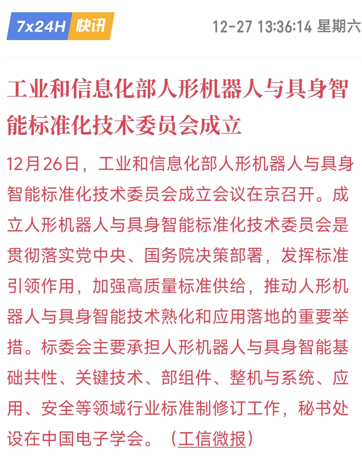 Am 26. Dezember wurde in Peking der Normungsausschuss für humanoide Roboter und embodied Intelligence des Ministeriums für Industrie und Informationstechnologie gegründet. Diese Maßnahme markiert das Ende der "wilden Wachstumsphase" unserer humanoiden Roboter und der embodied Intelligence-Industrie und leitet einen neuen Weg in die standardisierte und normierte Entwicklung ein, der von der grundlegenden Logik aus die Technologieimplementierung und die Skalierung der Industrie vorantreiben wird.