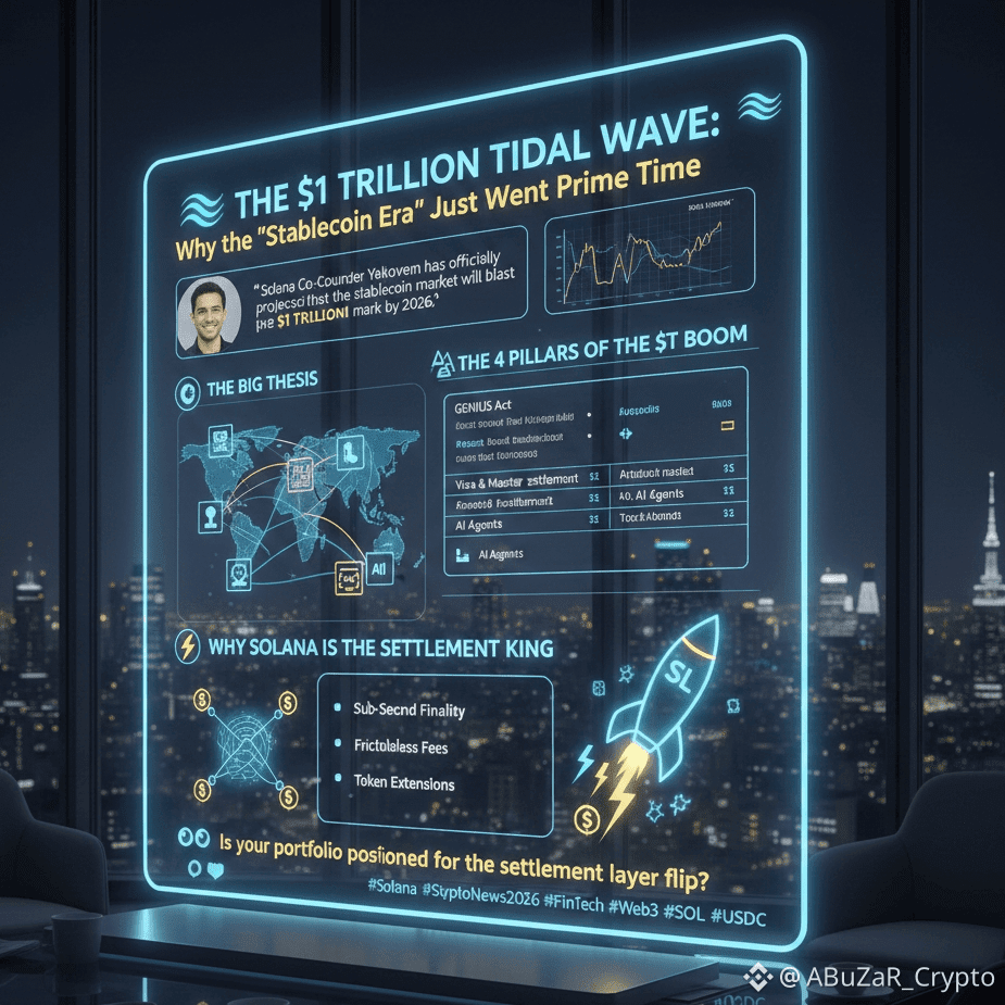 The forecast is in, and it’s sending shockwaves through Wall Street and Web3 alike. Solana Co-Founder Anatoly Yakovenko has officially projected that the stablecoin market will blast past the $1 TRILLION mark by 2026.
