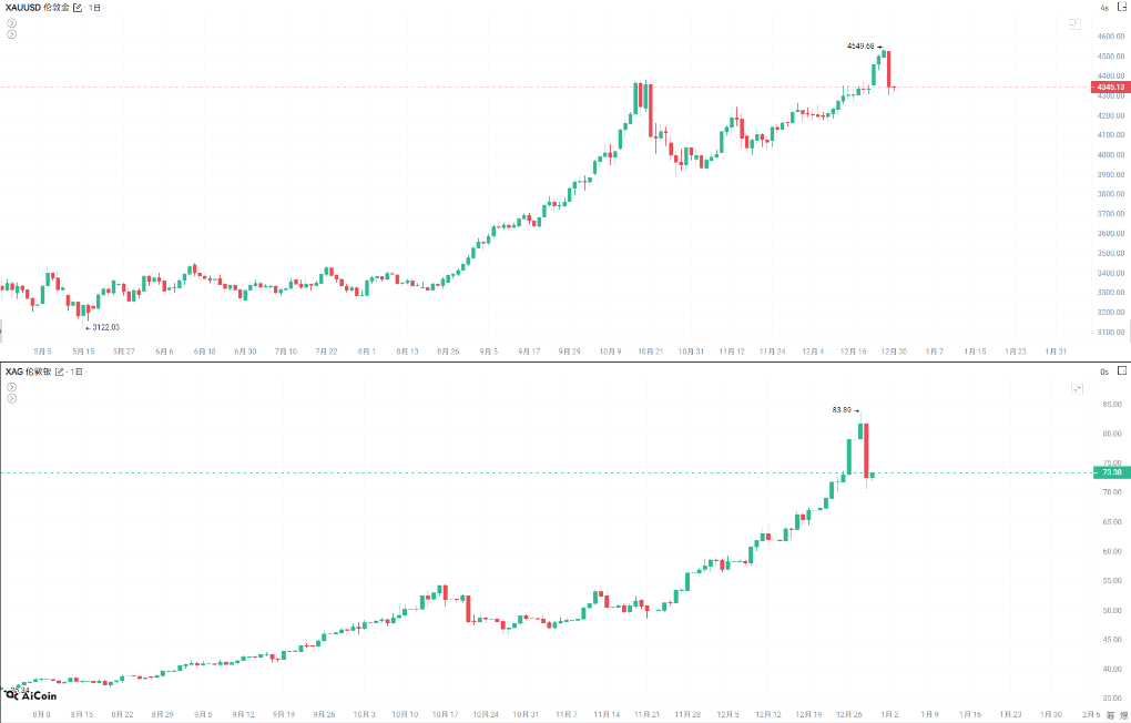 Hinter den Daten steht ein epischer Anstieg des Edelmetallmarktes im Jahr 2025 – der Goldpreis erreichte 4524,30 Dollar/Unze, ein Anstieg von 70% im Jahresverlauf; der Silberpreis erreichte ein historisches Hoch von 72 Dollar/Unze und stieg im Jahresverlauf um 143%.
