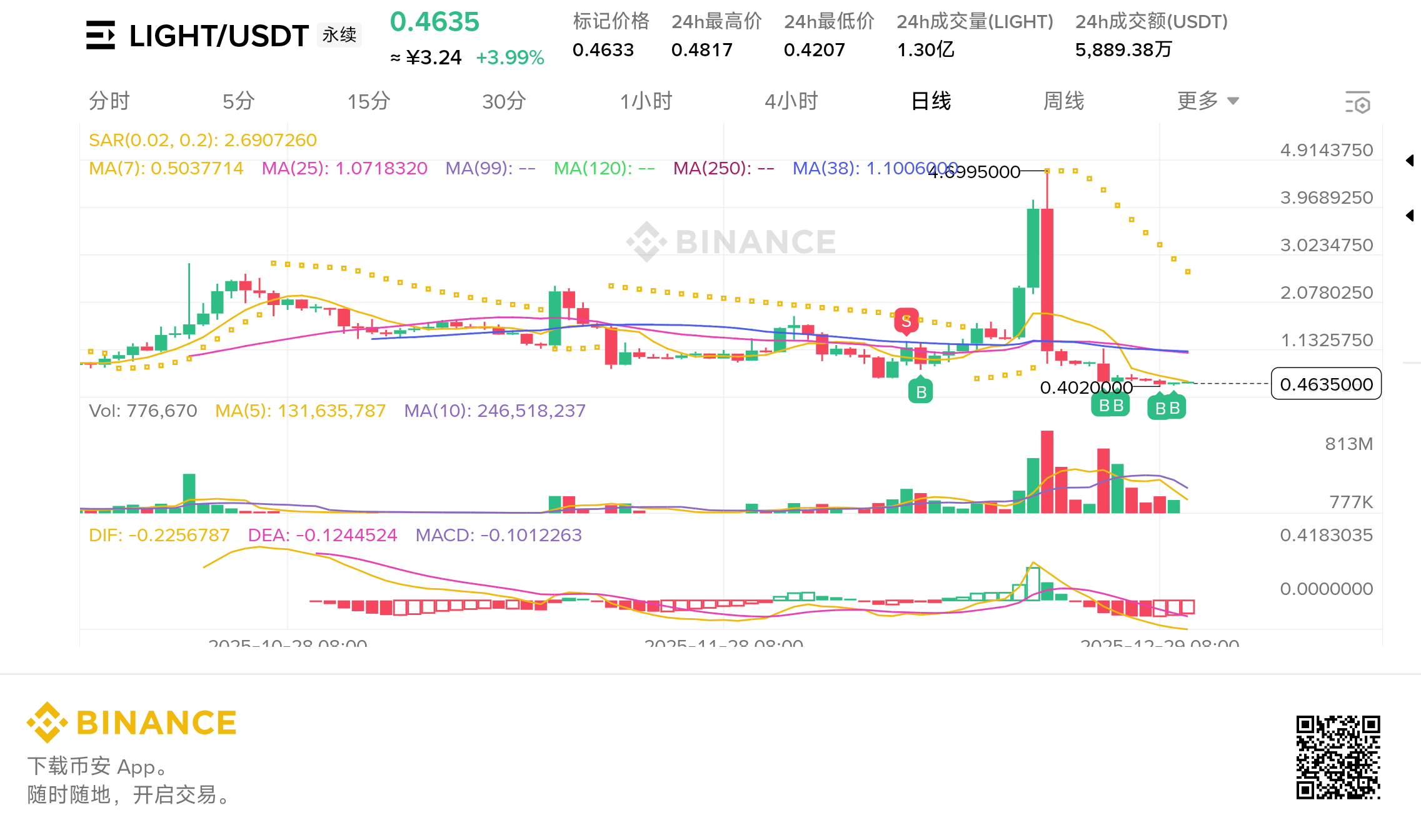 Der aktuelle Kurs von Bitlight beträgt 0,4485 USD und liegt deutlich unter dem historischen Hochpunkt. Dieser überverkaufte Zustand könnte eine überzogene Reaktion der Marktsentiment sein oder absichtlich von den Hauptakteuren erzeugt werden, um Panik auszulösen und zu „waschen“.