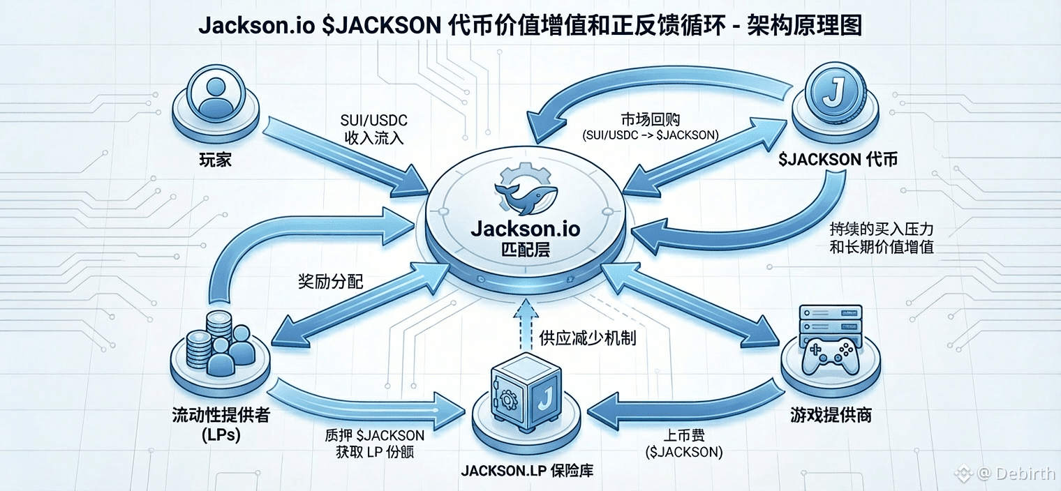 玩家使用$JACKSON投注(2026Q1享10倍积分)、游戏供应商通过$JACKSON结算、流动性提供者(JacksonLP)通过质押并分红$JACKSON以及市场的回购等行为,为该代币提供了源源不断的买入压力,形成了一套完善的长期价值增值体系。