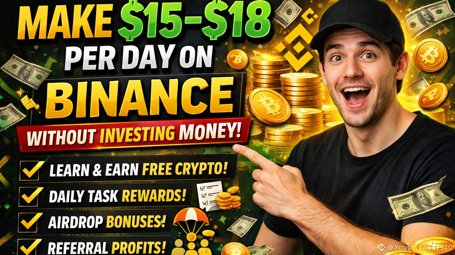 Du benötigst kein Kapital, um auf Binance zu verdienen; was du wirklich brauchst, ist Bewusstsein, Teilnahme und Geduld. Durch die Kombination von Lernbelohnungen, aufgabenbasierten Einnahmen, Werbeaktivitäten und optionalen Empfehlungen ist es völlig machbar, $15 bis $18 täglich ohne Investition zu verdienen. Fang klein an, bleib engagiert und lass die Plattform von Binance zu deinem Vorteil arbeiten.
