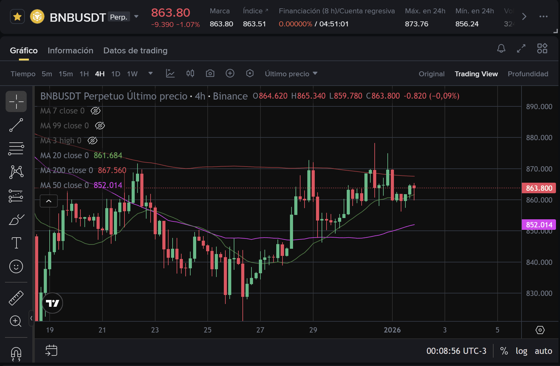 Wir starten das Jahr 2026 mit BNB, das im Bereich von $864 USDT notiert, und zeigen ein extrem komprimiertes Preisverhalten. Während das Ökosystem Rekorde beim TVL feiert, schreit uns das Diagramm "Unentschlossenheit" entgegen. Akkumulieren wir Kraft, um die $900 zu durchbrechen, oder steht uns eine Korrektur bevor? Lassen Sie uns die Daten analysieren.
