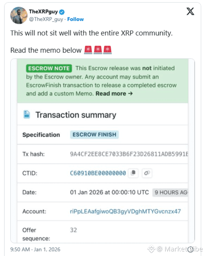 The panic started when a user-added memo was attached to a standard EscrowFinish transaction. It claimed Ripple was dumping tokens to fund its new RLUSD initiatives.