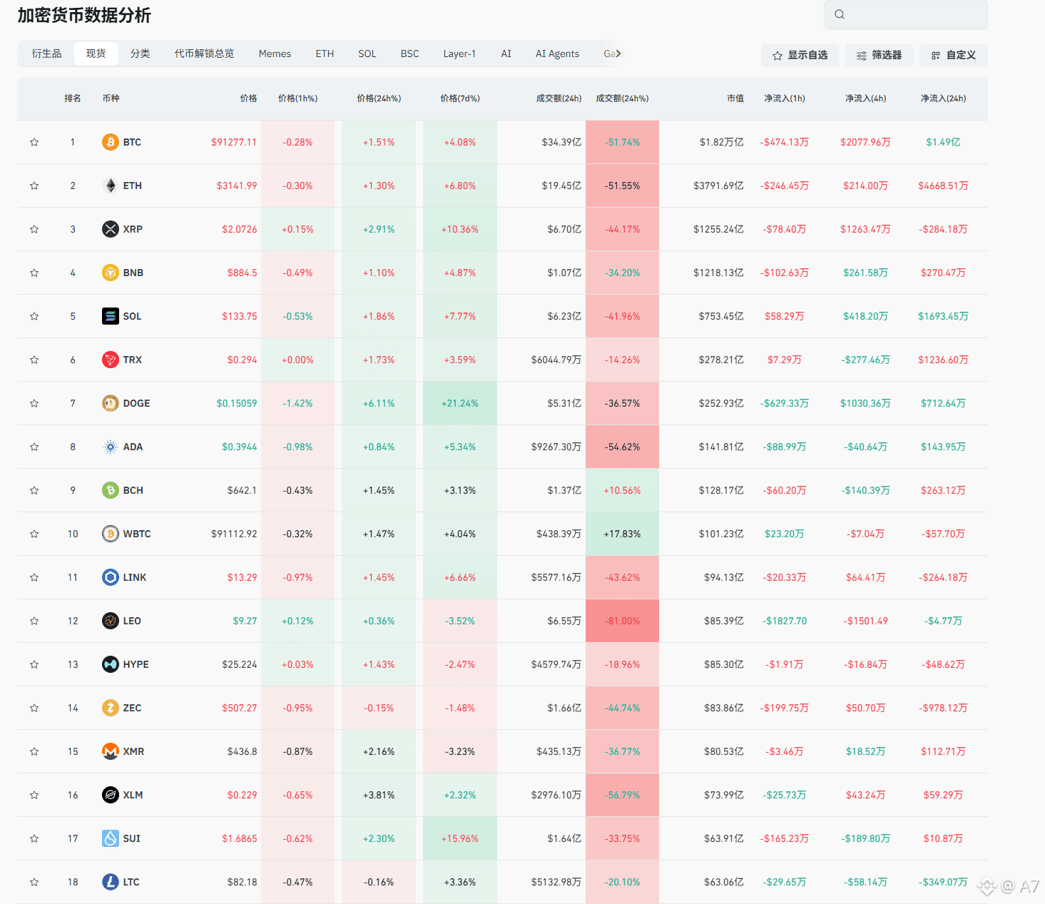 讲到这里,或许对于做空的各位来讲,是一个机遇。大家不要觉得,多头状态下无法做空,不存在这种理念。仓位不大或者是资金不足的用户,是需要把握住来回震荡的区间,去进行获利。包括本次行情的启动,不会一蹴而就,还会有一定的回调深度。行情也大概率会围绕,冲击新高产生回调,而彻底爆发之前,也一定会迎来一波深度的下探,直至将多头爆仓70%以上才会拉盘。所以,无论是做空还是做多的各位,可以把握本次的洗盘进行建仓或者是出场。整体看大盘的表现,XRP四小时的流入仅次于BTC,其次就是DOGE;增长的状态,也是这两个币种较为突出,目前SOL的表现较为拉跨,但有冲击新高的迹象,对这一类的小币种,想要进场的各位也尽量等待冲高之后回调再说。