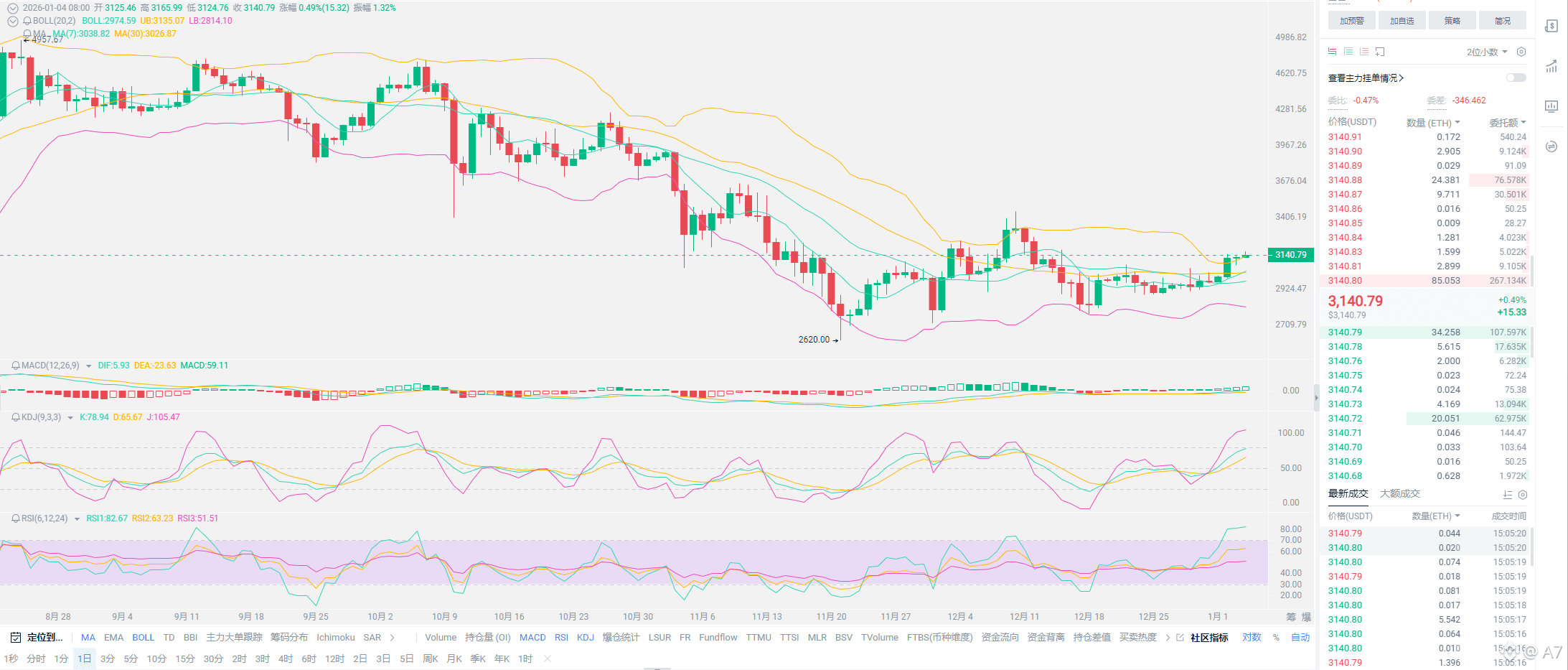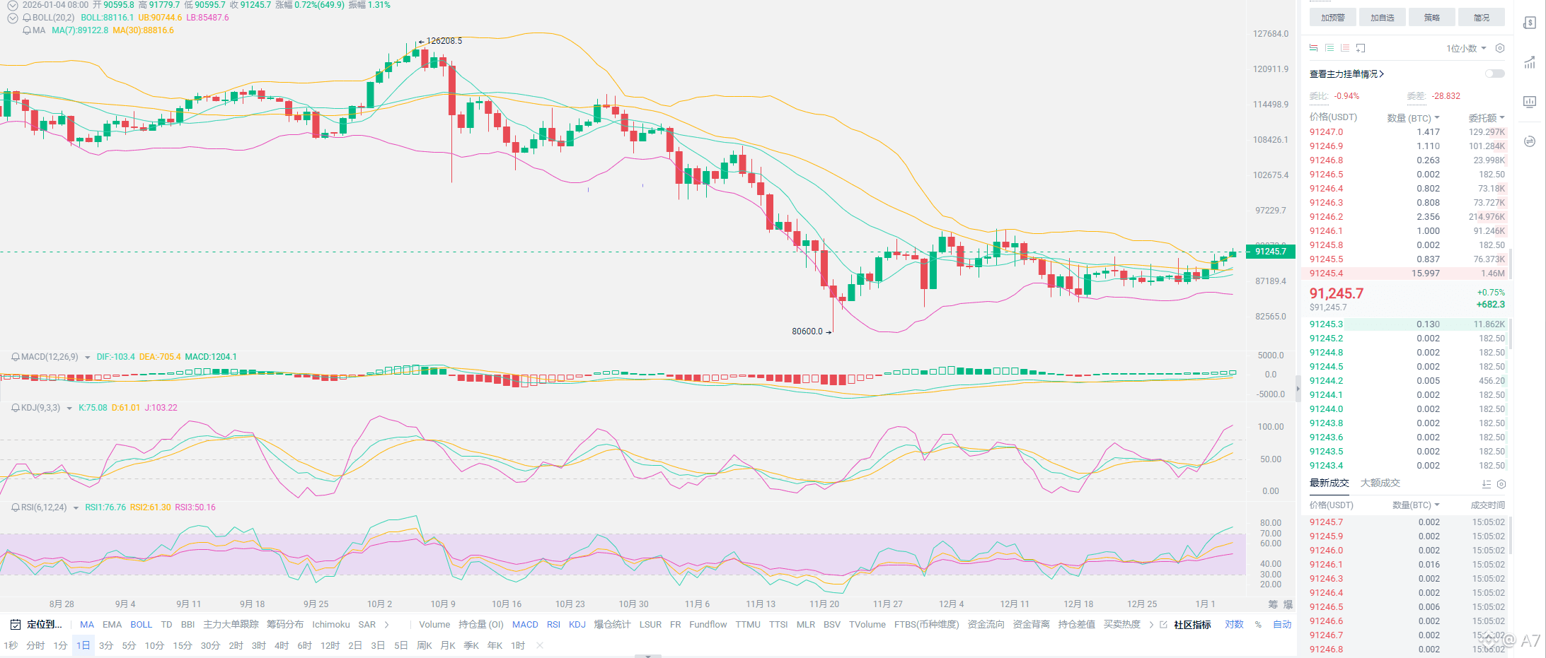 A7总结:整体来看,趋势没变也没有太多需要啰嗦的东西,至少今年的现货表现是会优于25年。各位需要耐心一些,合约用户的安排,比特币已经有企稳91000的迹象,以太也出现了新的趋势,大概率会冲击一下新高,那么下一阶段的压力位置,昨日也给到了大家,就继续盯着新高;比特币能够破位下一阶段的新高也就是94950附近,以太3600附近,只要破位基本就宣告着牛市重归,一旦无法破位,恐怕还会延续一段时间的震荡。举例降息的会议日期还远,29日才会公布利率决议,避开这个日子即可!