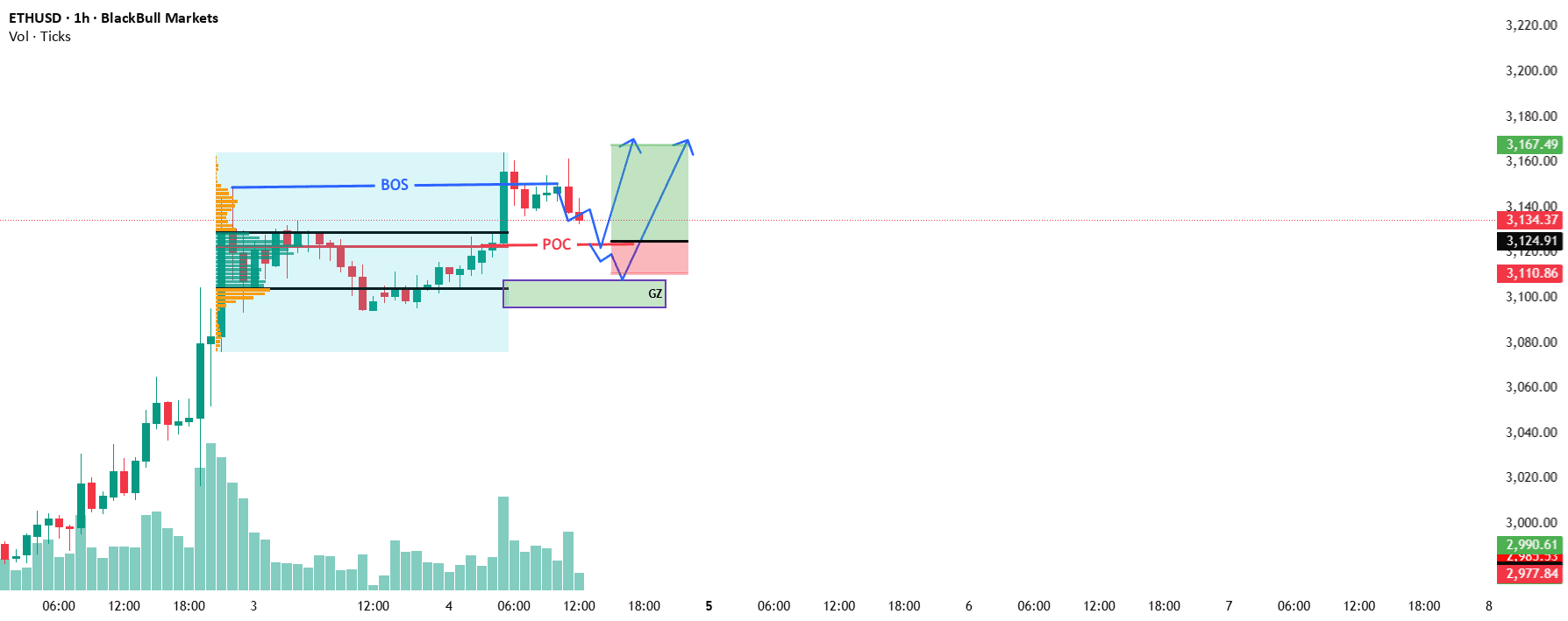 Jetzt zum Zeitpunkt des Ruhestandes bei 3124.91 Punkten, dann wird eine klare Kaufbestätigung gegeben, dann werde ich eine Kaufposition eingehen.