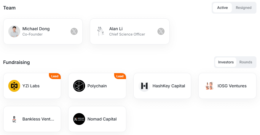 Die Seed-Runde von 7,5 Millionen US-Dollar wurde im November 2024 abgeschlossen, angeführt von Polychain Capital und Binance Labs, mit Beteiligung von IOSG Ventures, Nomad Capital und anderen.