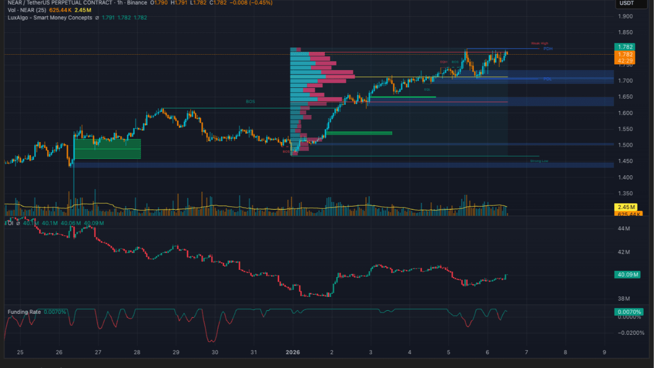Widerstand / Angebot: ~1.79 – 1.80 (schwache Hochs, PDH, Verkaufsliquidität)