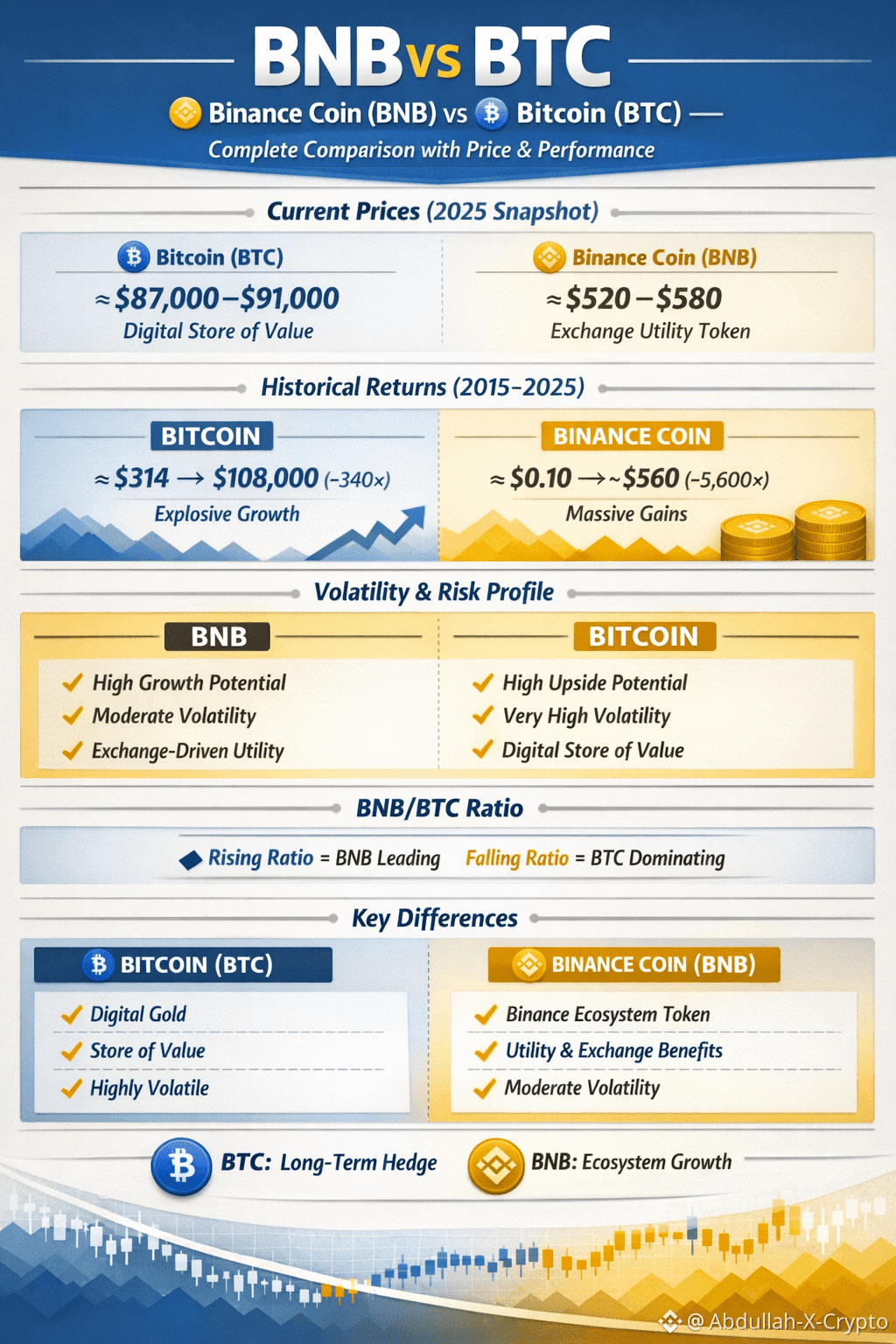 Portfolio Tip: BTC for long-term value & hedging, BNB for growth and crypto-specific utility exposure.