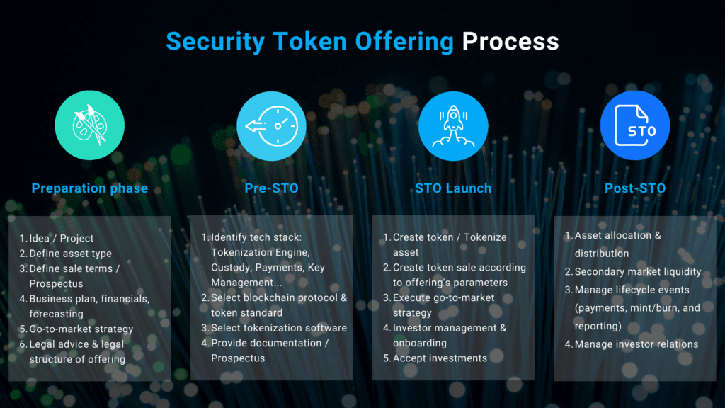 Sicherheitstoken werden typischerweise über Security Token Offerings (STOs) ausgegeben, die traditionellen Kapitalerhebungen ähneln – nur dass sie on-chain durchgeführt werden.