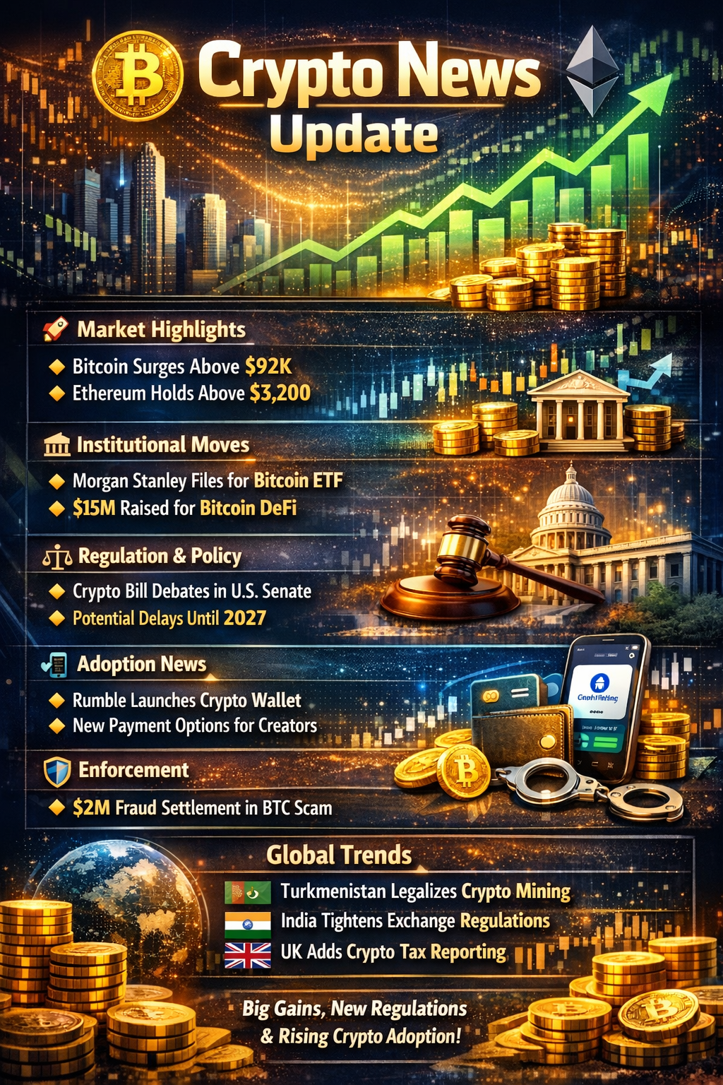 Die Marktentwicklung verlief heute insgesamt uneinheitlich, wobei Bitcoin bei rund 92,8 Tsd. US-Dollar notierte und Ethereum sich Ăźber 3.200 US-Dollar hielt.