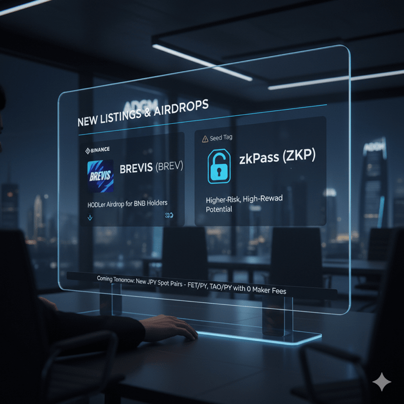 Die Listing-Aktivität von Binance bleibt so dynamisch wie eh und je, wobei zwei Token, Brevis (BREV) und zkPass (ZKP), erhebliche Aufmerksamkeit erregen. Brevis wurde diese Woche mit mehreren Handelspaaren gelistet und ist besonders aufgrund des zugehörigen "HODLer Airdrops" für BNB-Inhaber im Trend, der langfristige Treue belohnt. Gleichzeitig wurde zkPass (ZKP) mit einem "Seed Tag" hinzugefügt, was auf ein höheres Risiko und ein hohes Potenzial für hohe Erträge hinweist. Außerdem plant Binance, morgen, am 9. Januar, neue Spot-Paare mit japanischem Yen (JPY) einzuführen, wobei eine Werbeaktion mit null Maker-Gebühr gilt.