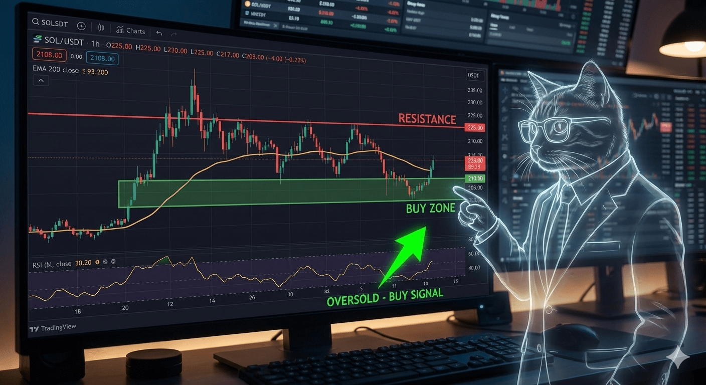 1. Zona der "Scharfschützen" (Kauf): Mein idealer Einstieg liegt zwischen 208 und 210 USD. Warum? Weil dort der psychologische Support mit der Annäherung an die EMA 200 zusammenfällt und der RSI bereits laut "Überverkauft!" schreit.