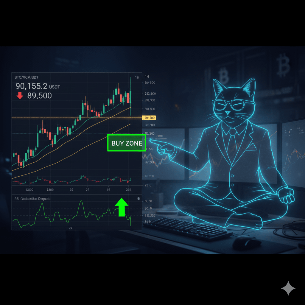 Akku-Zone: Der Bereich zwischen 89.700 USD und 90.200 USD ist unsere Interessenszone. Hier wird die Liquidität der Long-Positionen aufgefangen.