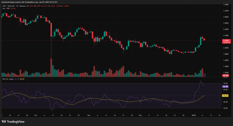Der Preis von Ripple $XRP stieg um bis zu 31 % vom wöchentlichen Eröffnungspreis von 1,84 US-Dollar am 1. Januar auf ein lokales Hoch von 2,41 US-Dollar am Dienstag. Seitdem ist die Kryptowährung jedoch auf den Preisbereich von 2,2 US-Dollar gefallen. Der Rückgang des Ripple-Preises in den letzten zwei Tagen war nicht überraschend, da die Kryptowährung nach dem jüngsten Anstieg überverkauft war. Dennoch war sie im Vergleich zu ihren Höchstständen im Jahr