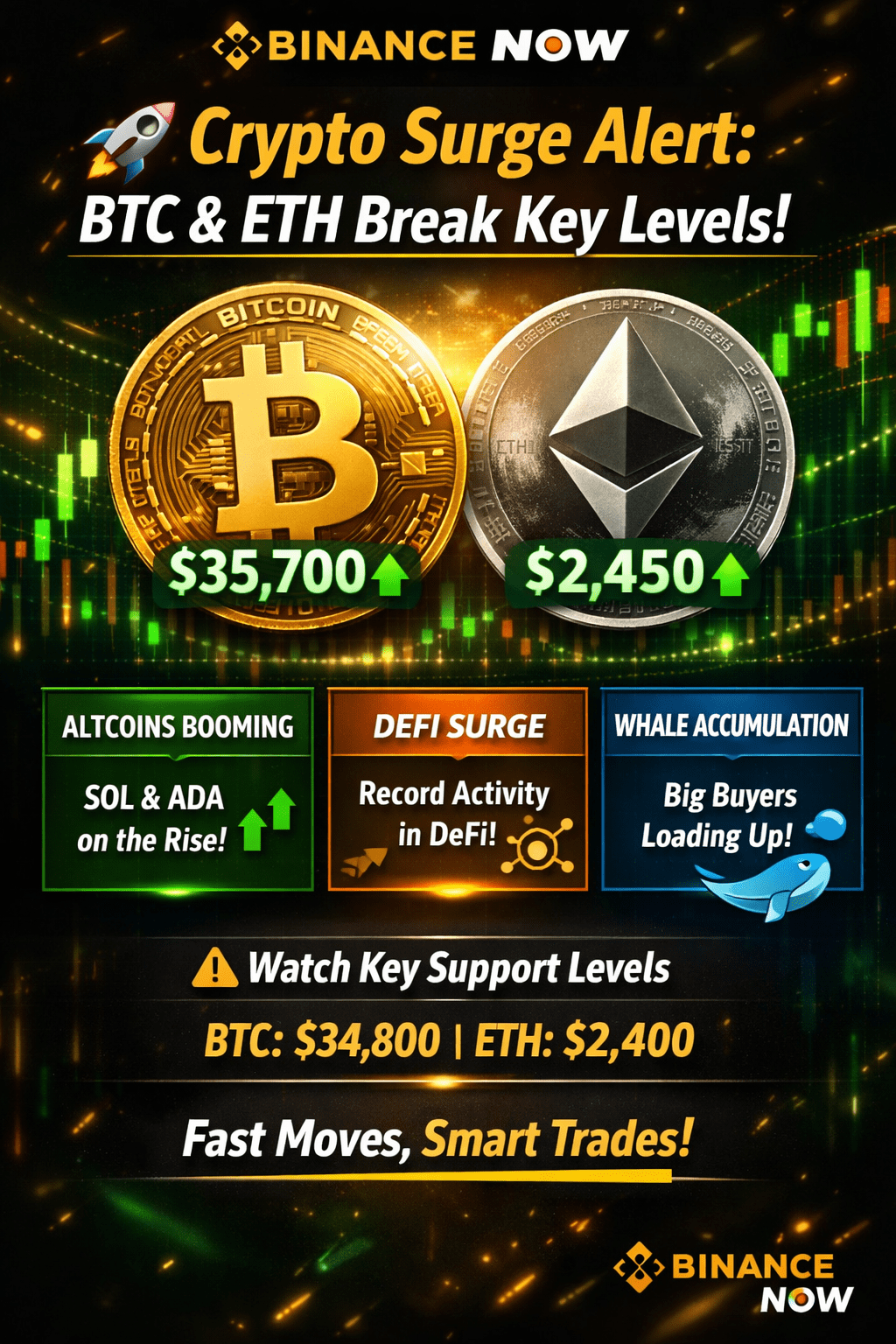 Die Kryptowelt ist in Aufruhr, da Bitcoin und Ethereum heute plötzliche Volatilität zeigen. BTC stieg über 35.700 USD hinaus, bevor er leicht zurückging, während $ETH 2.450 USD erreichte, begleitet von steigendem Handelsvolumen. Analysten sagen, dass diese Bewegung durch institutionelles Interesse und Nachrichtenzyklen beeinflusst wird, die das Anlegerverhalten beeinflussen.