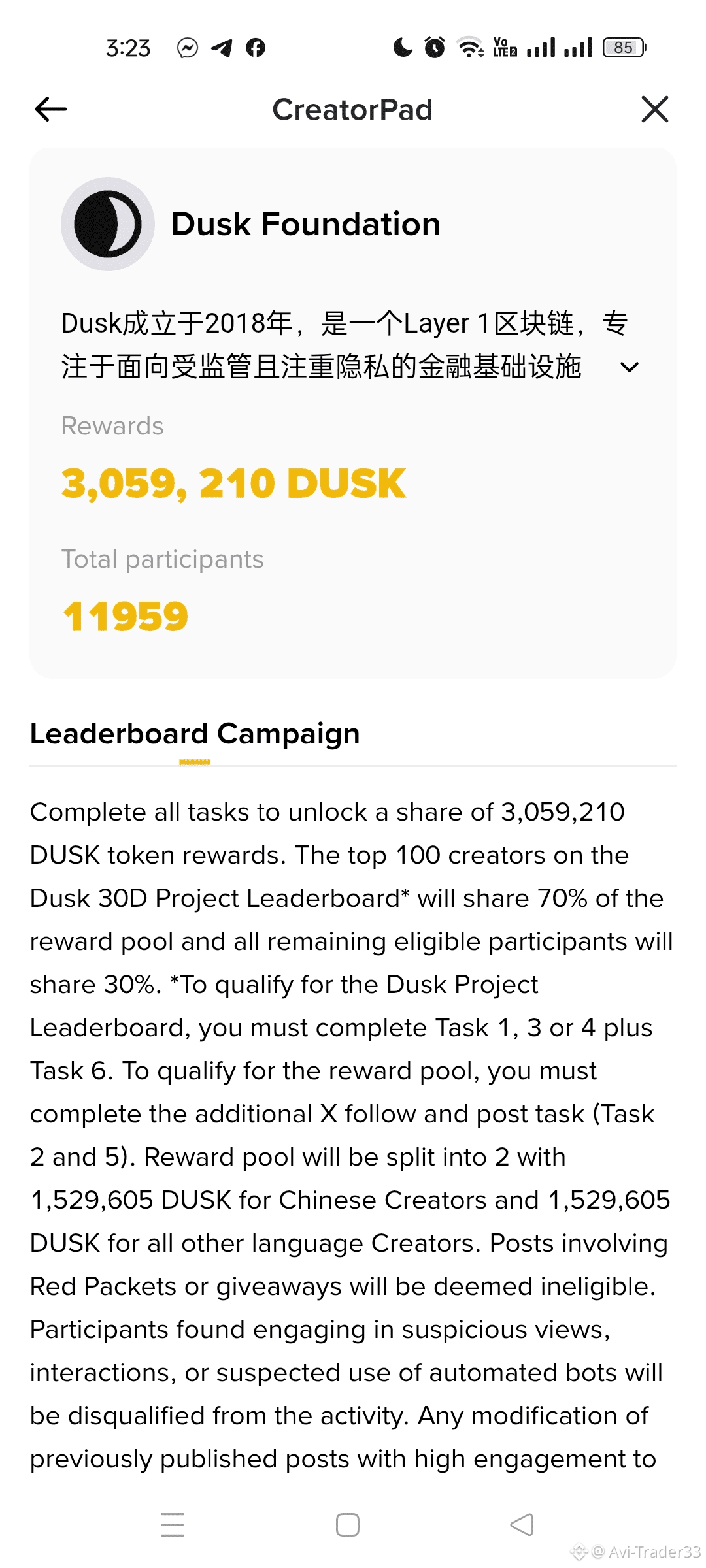 To qualify for the Dusk Project Leaderboard, participants must complete Task 1, 3, or 4 along with Task 6, while eligibility for the overall reward pool additionally requires completing the X follow and post tasks, specifically Task 2 and Task 5 .@Dusk #Dusk