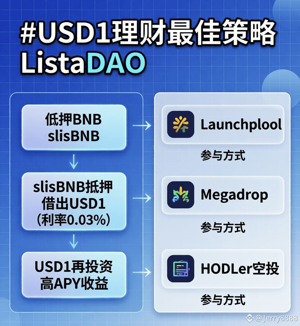 🎯 小技巧:搭配Lista DAO的CDP功能,动态调整抵押率,确保安全边际。快来试试,让资金躺着赚钱!#USD1理财最佳策略ListaDAO $LISTA