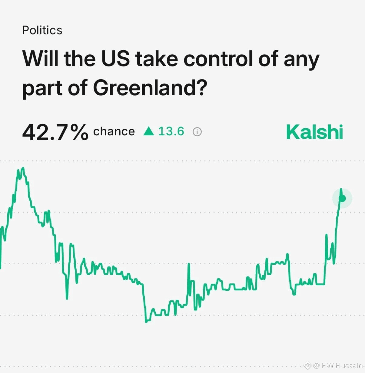 Prediction markets are increasingly pricing in a highly unconventional geopolitical scenario: President Donald Trump purchasing at least part of Greenland. According to market-based odds, the probability has surged to 42.7%, reflecting growing speculation among traders and political observers.